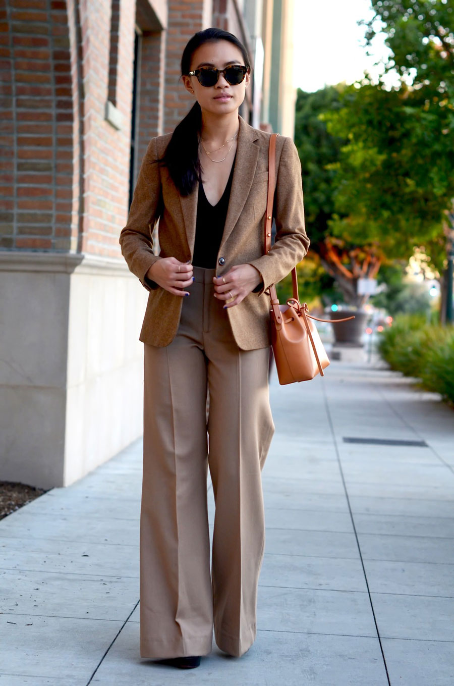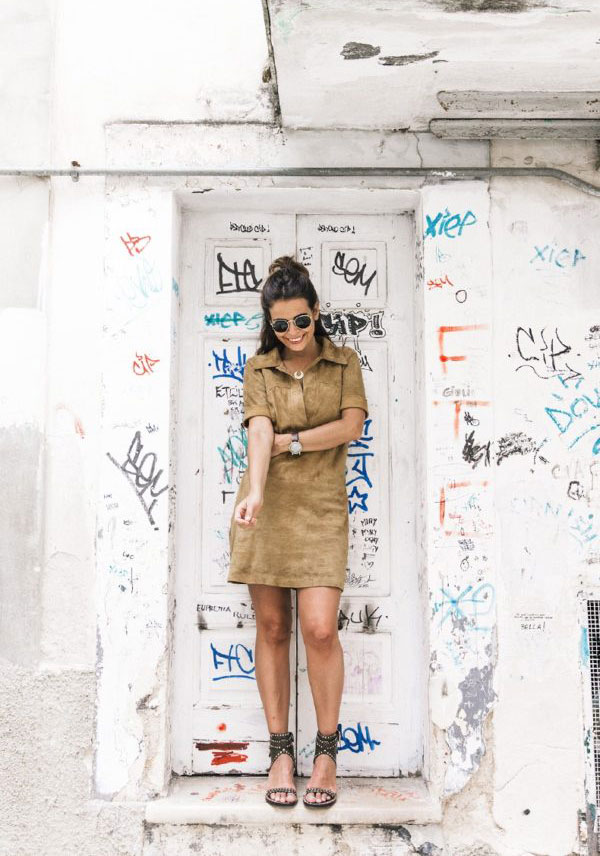 A light shade will add freshness to the image, and brown will make the look soft and subtle. In a beige dress, complemented by a brown blazer, you will feel very elegant.