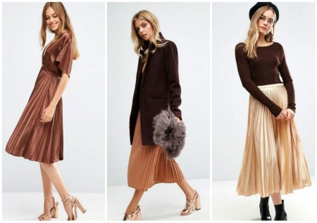 A knit or knit dress of brown color will look good in casual looks. If you are a fan of boho style or ethno, pay attention to the skirt to the floor, which can be supplemented with a thin jumper and leather jacket.