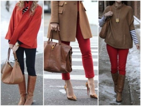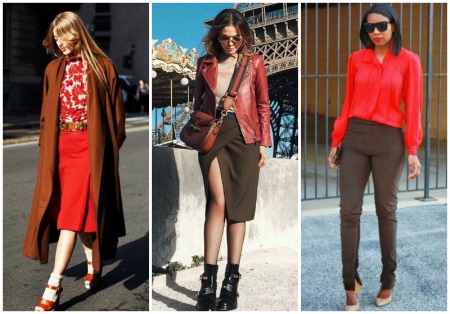 In the summer, wear a red dress with brown sandals, and in the fall, give preference to brown pants and a red coat. These two colors will allow you to always look great!