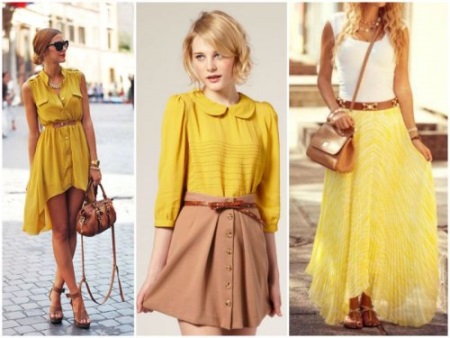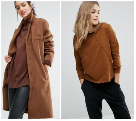 This is a great solution for the off season - a brown coat can be complemented with yellow accessories, a handbag or a scarf. The most courageous girls can buy a coat of yellow color, which will be complemented with brown accessories.