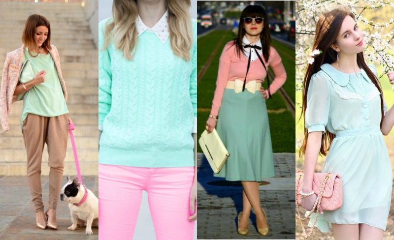 There are colors that go to everyone, regardless of hair and skin color. Mint is one of those. Images with the use of this color are for girls with any color type, but for blonde women with fair skin it is better to choose rich, bright shades of mint, and for girls with dark hair and dark skin, gentle pastel colors will do.