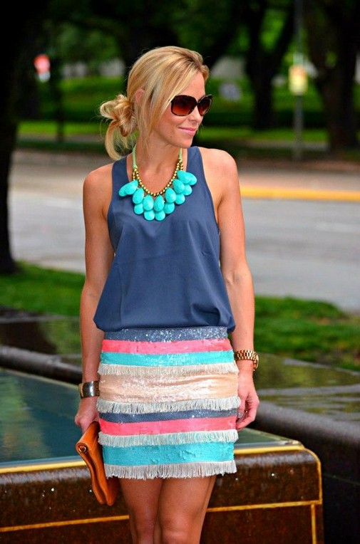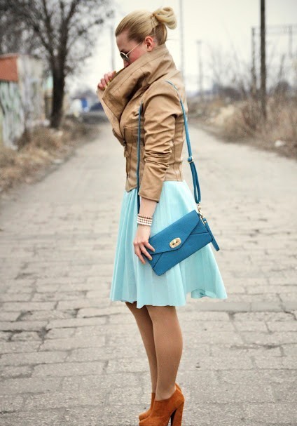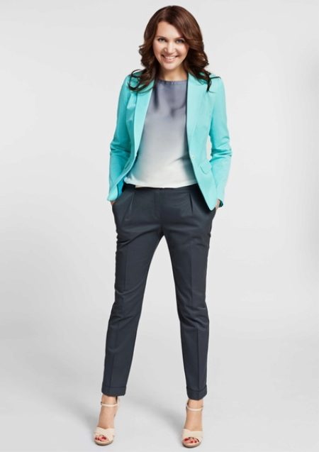 Choosing a decent company for a jacket of light shade of light turquoise, you can choose a deliberately winning combination of two colors. This combination can rightly be considered a familiar pair of blue and yellow.