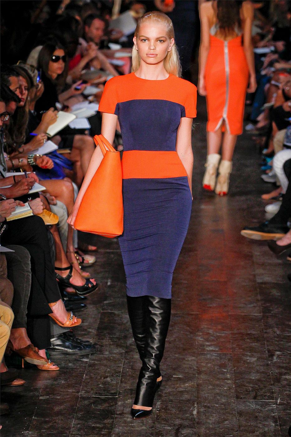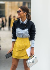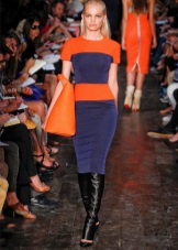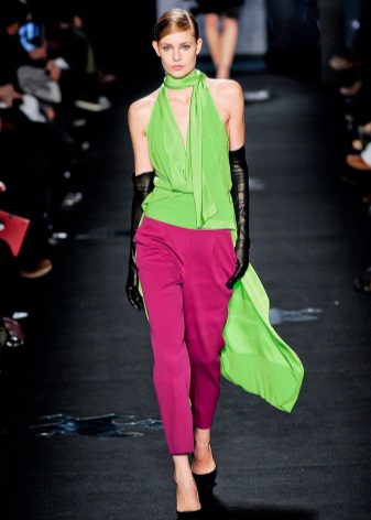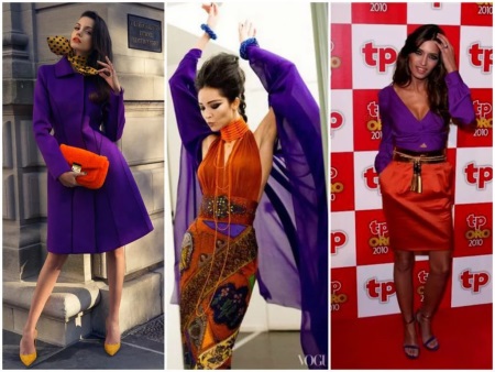 For example, adding a pair of shoes of a lilac shade to a green dress, or diluting a monochrome mint look with purple boats. A saffron dress in a company with cobalt boots will look good.