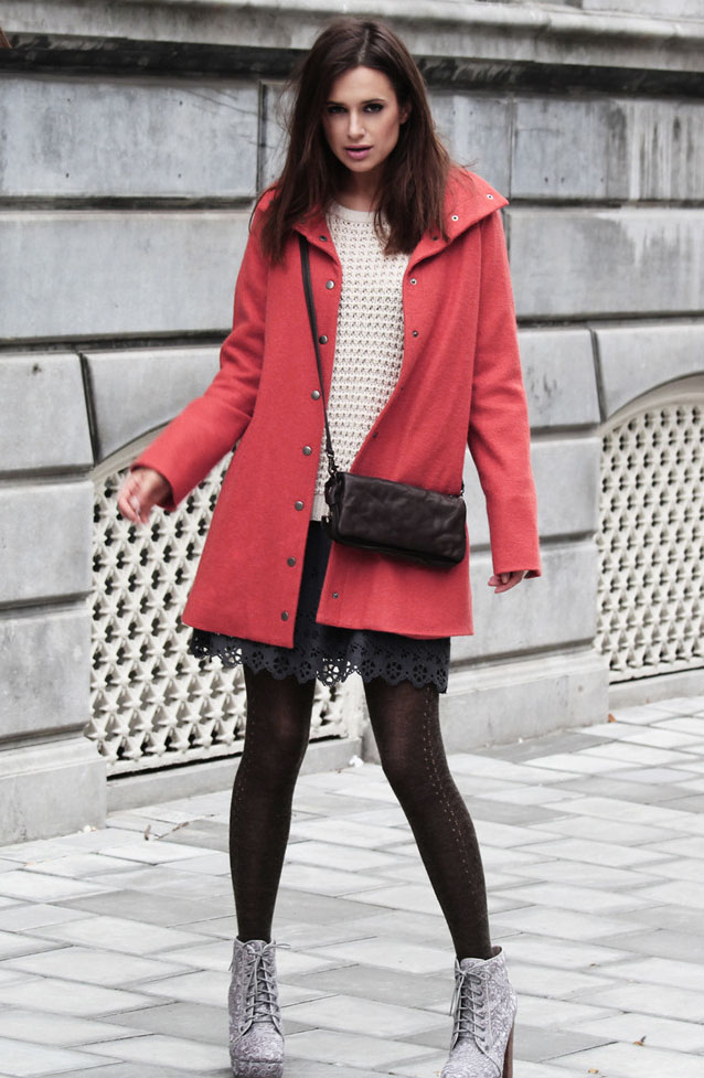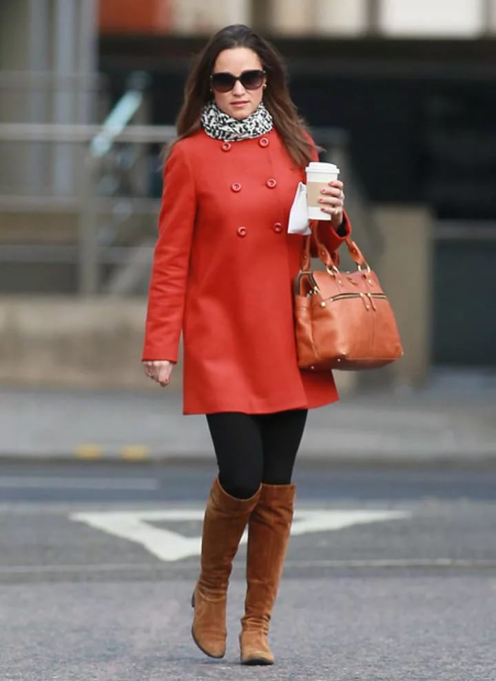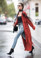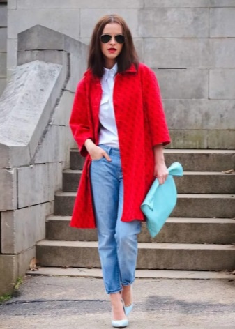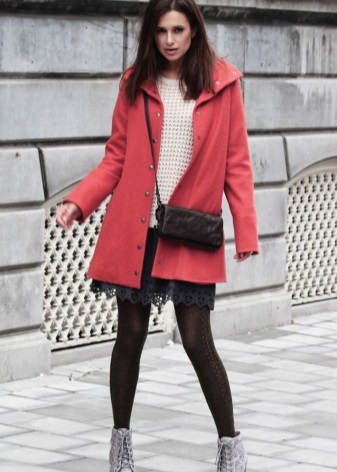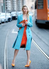 Coral-colored coat looks very feminine and elegant, it is a great solution for spring. To him you can pick up shoes and accessories of blue-blue, pistachio, mint hue. You will feel relevant and fresh.