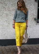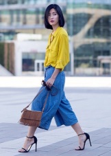 Shades of yellow and brown look spectacularly in one image. Helps to dilute the image of metallic shoes and accessories. Look will be appropriate in everyday life and suitable for a special occasion.