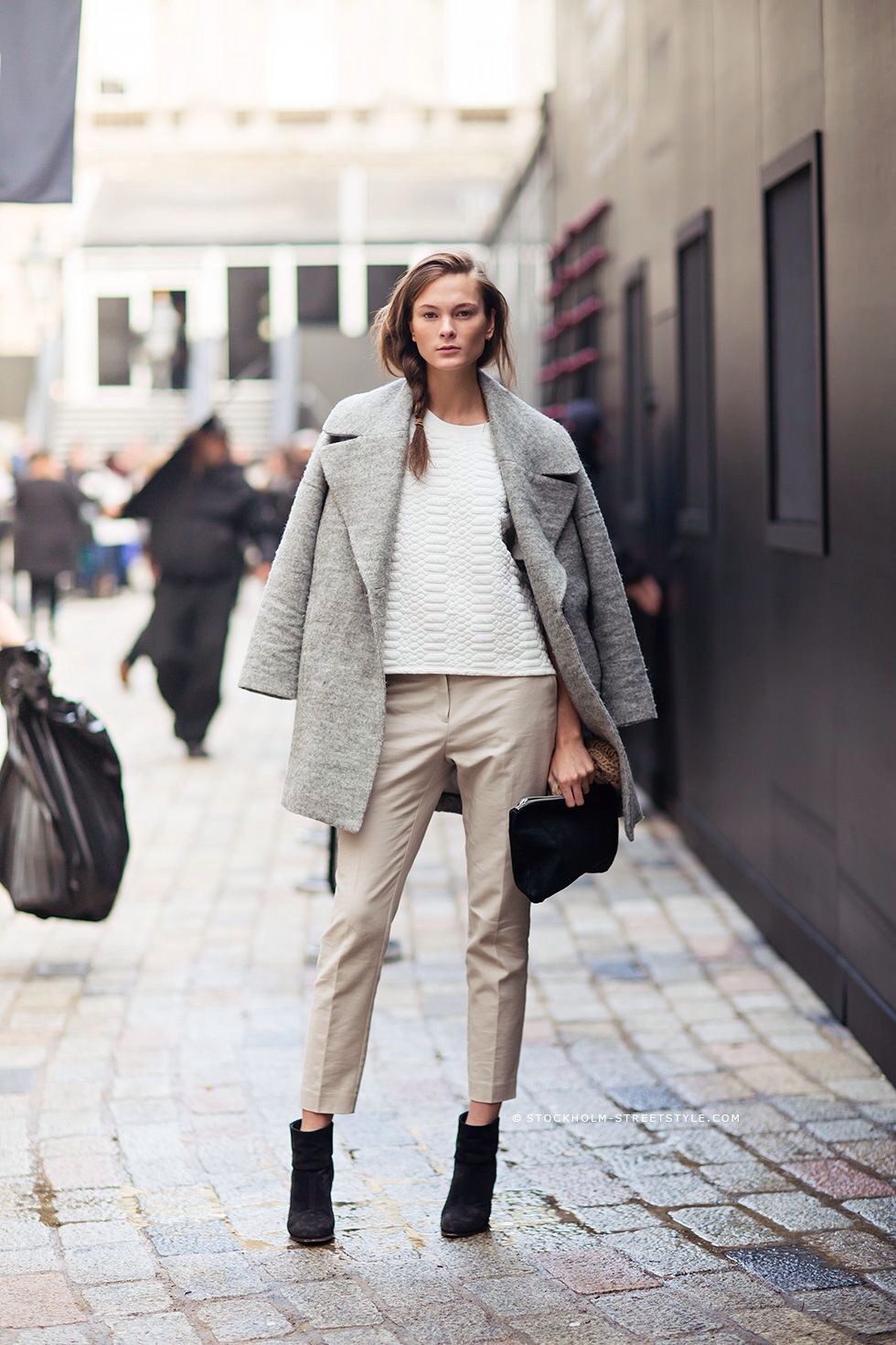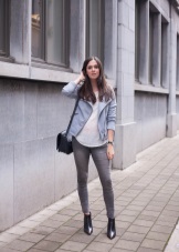 In everyday images, gray is best combined with a neutral and pastel color scheme. If you want a more grunge look, use graphite and black, putting the accent in the form of bright red lipstick or shoes.