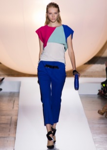 - The size of the color spot - the image is built in a neutral color scheme, with the addition of bright details. Most often it is a shirt or blouse, but there can also be trousers, a skirt. Using this technique, you can draw attention from the shortcomings and focus on the merits of the figure.