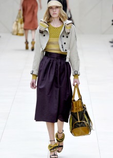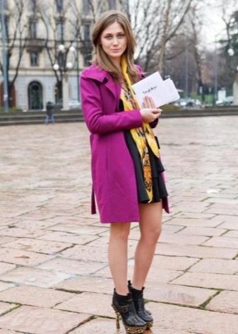 Coats or jackets of eggplant or plum shade look favorably on many girls, emphasizing their natural beauty. It is possible to combine such outerwear with shades of yellow and green, or related colors from the spectrum.
