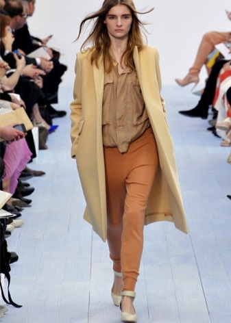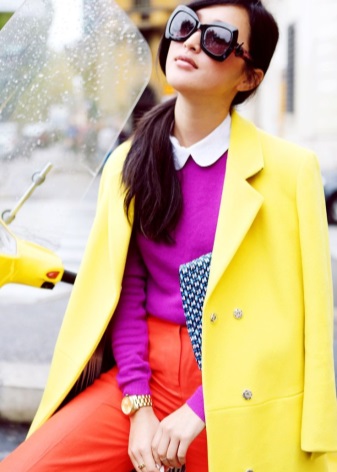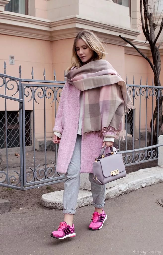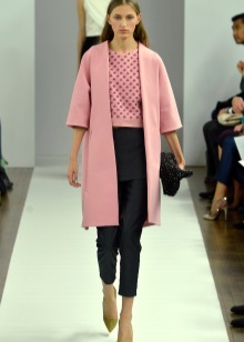 Outerwear of almost all shades of pink looks advantageous. As in the case of green, you need to find the right shade. It can be salmon, rose quartz, shocking pink, fuchsia. Best of all, it will be combined with shoes and accessories beige, yellow and green.