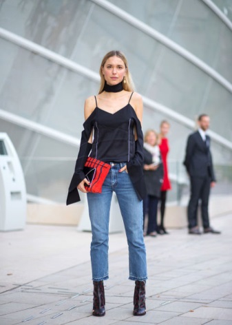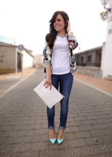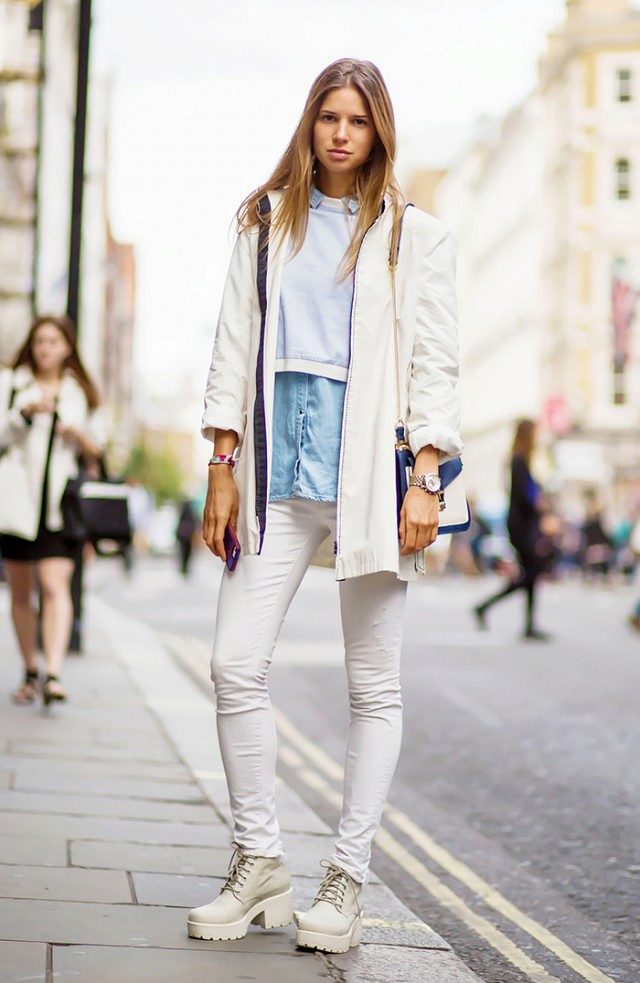 Leave white shoes for summer by choosing open shoes or sandals with high heels. True, this does not apply to white sneakers, which, in combination with blue jeans, have already become a classic.
