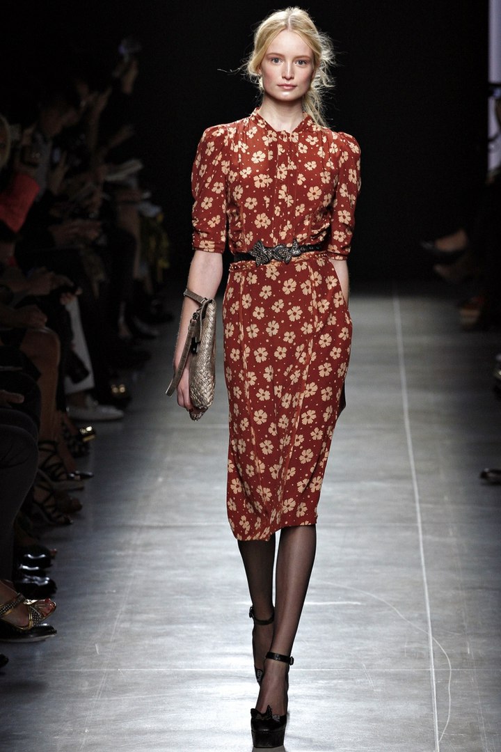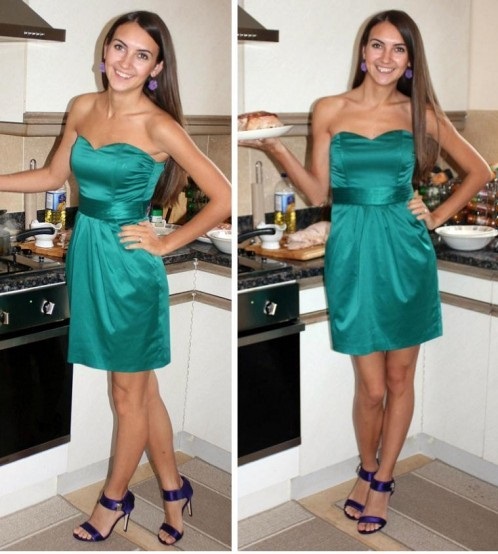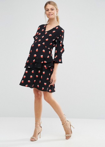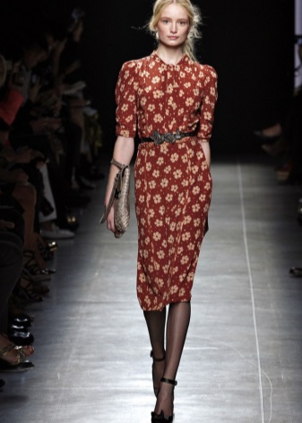 The dress of amber shade is perfect for light summer looks. It will look great on girls with the “Autumn” color type. You can add it with brown sandals and a handbag on a long strap.