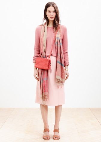 - Warm shades of pink are formed from orange and red. These are all colors with peach, coral, flamingo, strawberry and salmon. Best of all these shades are combined with soft, light colors, but also revealed in combination with cold blue. They can be worn with beige-brown colors, olive, khaki, gray-lilac.