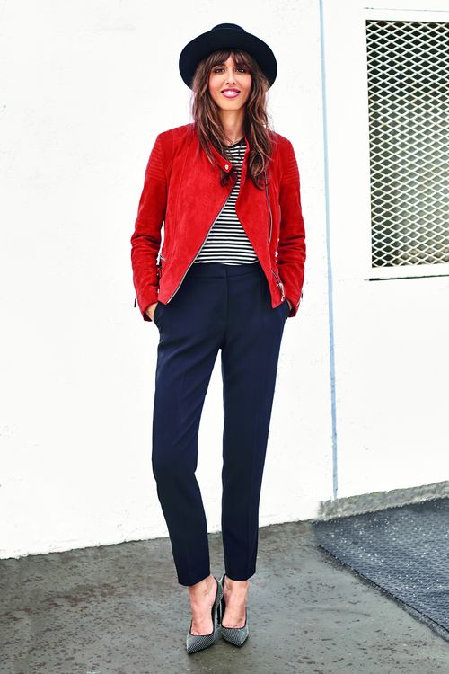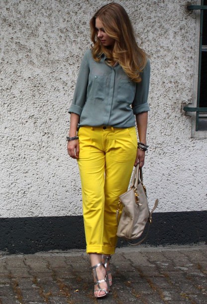 Colored shoes will look good in a calm, discreet images, sustained in the basic colors. Dilute gray, beige, black or dark blue with bright shoes and accessories.