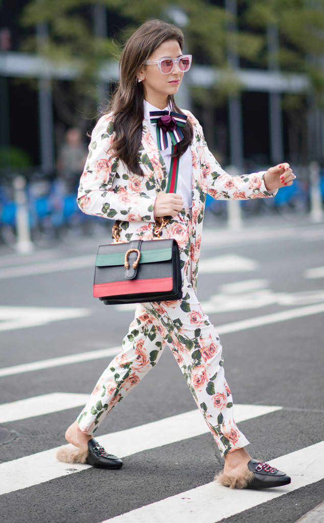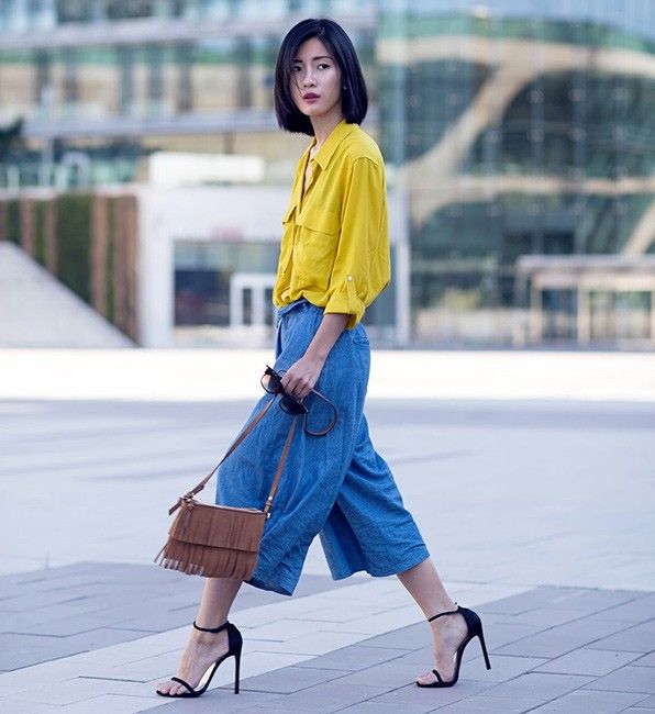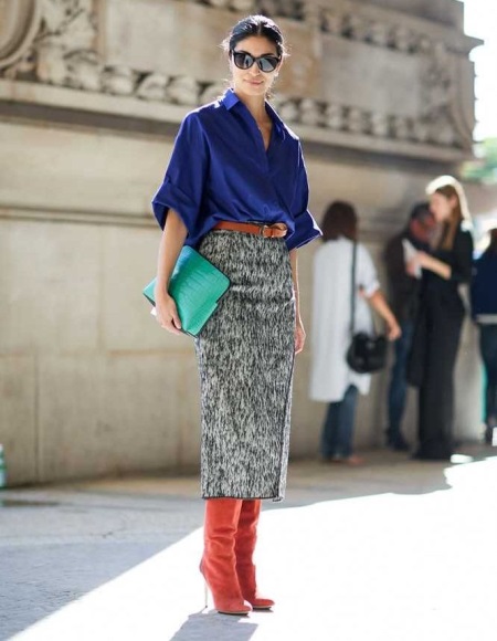 But if you are not ready for such a bold image yet, pick up shoes in beige or gray. Color shoes are also permissible if it exactly matches one of the colors presented in the image. In order not to overshoot, rely on pure shades without impurities, it is easier to match them.