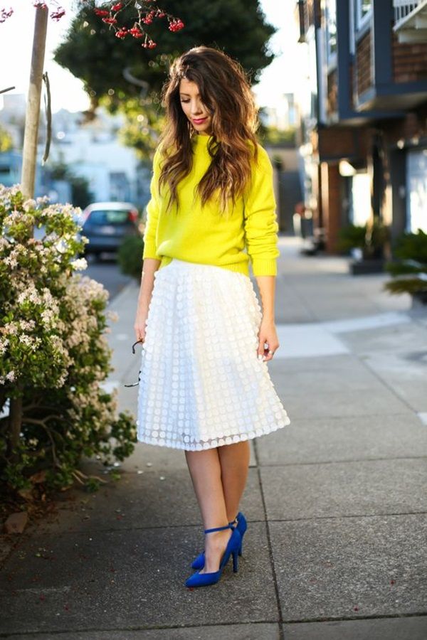 To bright dress you need to pick up bright shoes! You can focus on the color wheel, or use ready-made unusual combinations, which we mentioned above.