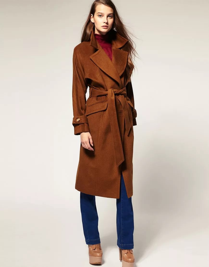 Brown coats are also popular, although it is rather difficult to select accessories for them. It looks best with blue, perhaps with green or yellow. Not every girl is going to decide on a shoe and a handbag of such bright color, therefore think several times before choosing brown outerwear.