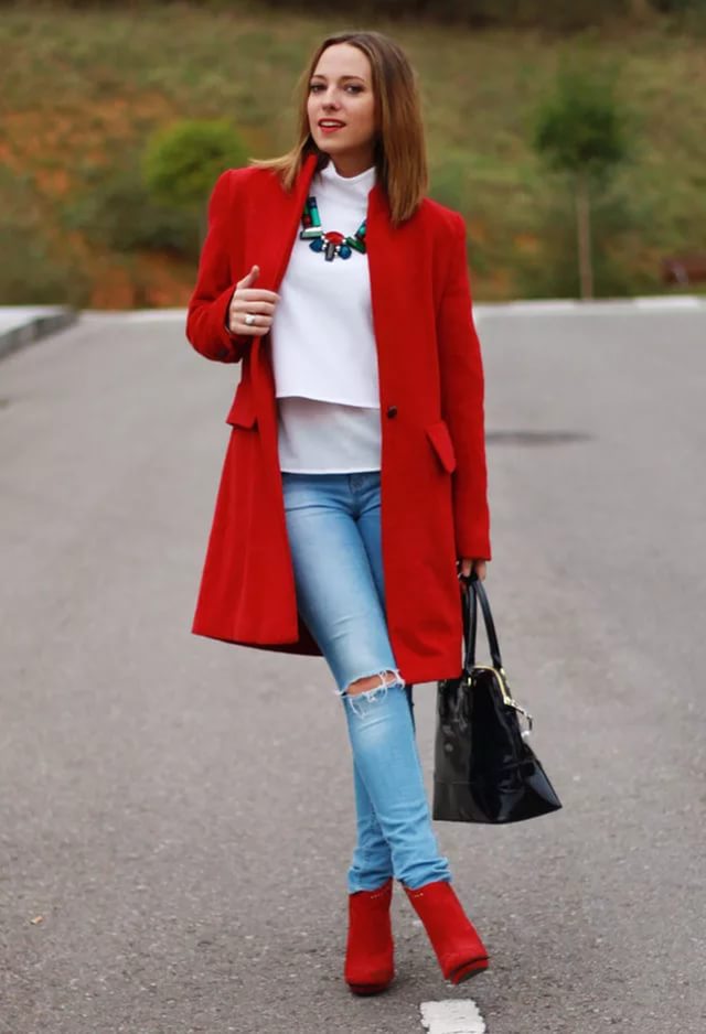 The scarlet coat, like black, is suitable only for owners of contrasting appearance, and is not very suitable for everyday wear. If you want to opt for red, choose its diluted shades. It can be lingonberry, pomegranate, cherry, cinnabar.