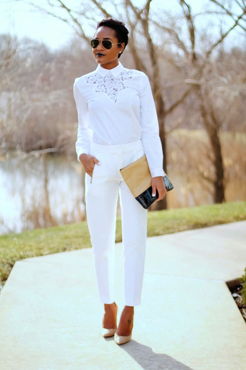 In this case, it is permissible to add an accessory of a different color. For example, dilute the white ensemble with a yellow clutch or gray with red.