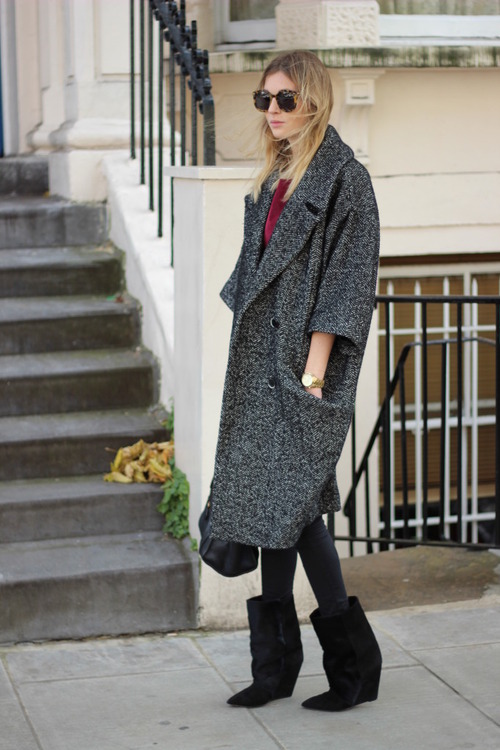 Gray color is not all, but it is still easier to fit into your wardrobe than brown. Gray coat will look good with shoes and accessories of burgundy, wine, graphite hue. In other matters, bright accessories also have a place to be, so it's interesting to experiment with it.