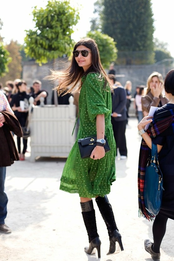 You can choose shoes and accessories of any color, you just need to experiment a little. Even blacks and browns, which do not match the previous colors, are appropriate. Therefore, it is definitely worth paying close attention to green.
