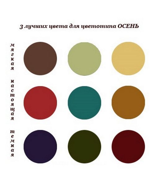 - Deep Autumn. Since the dominant parameter of this autumn-type variety is a dark appearance, the color of the hair and the eyes of its representatives will be dark. The most common are golden-brown eyes with yellow or green patches and brown hair, and the skin of these girls is often dark.