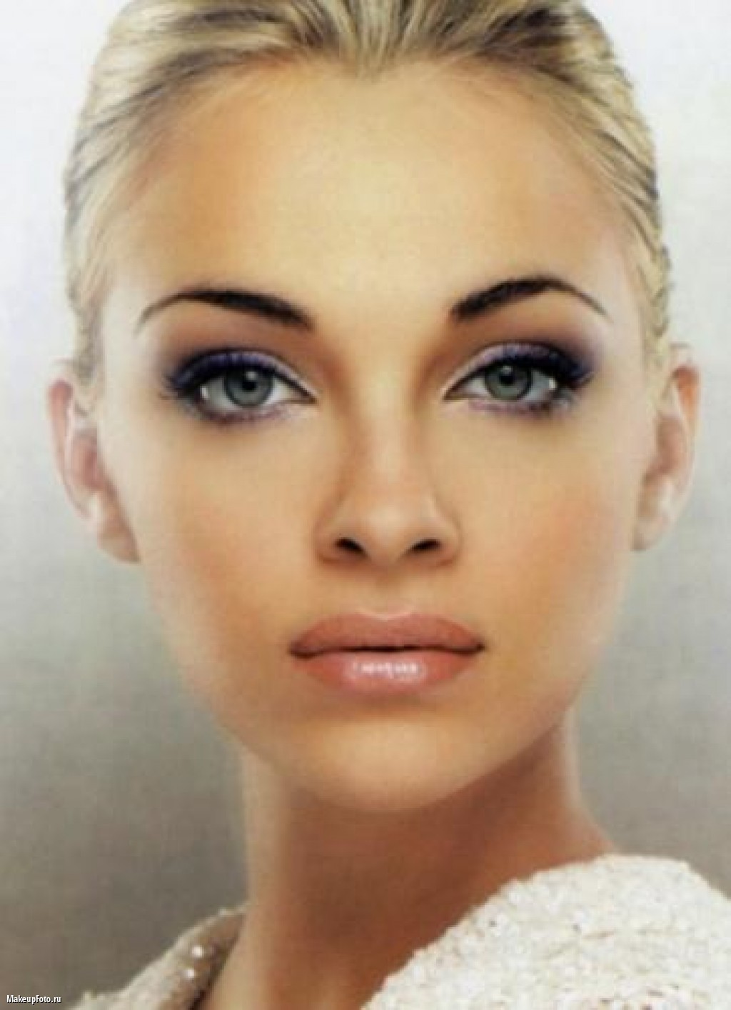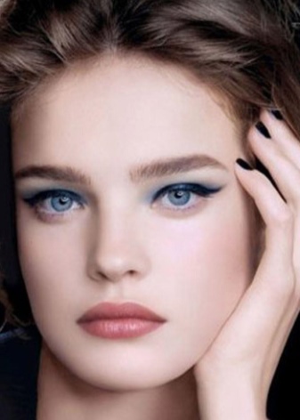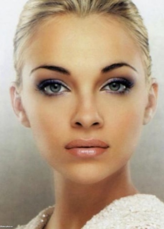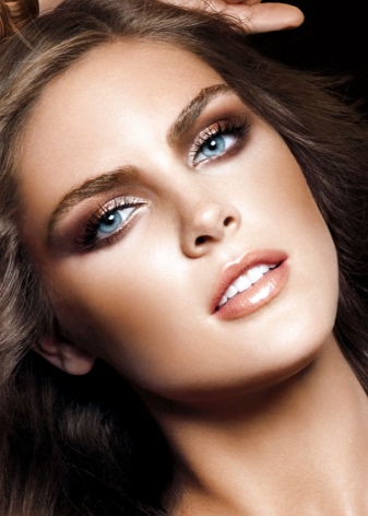 Evening make-up. It should be by definition more spectacular. Here it is worth making a bet on slightly more saturated shades of decorative cosmetics. For example, as an option: apply a translucent tonal foundation, use silver-blue eye shadows and “Smokey ice” technique for eye makeup, completing the image with delicate blush and pink lipstick.