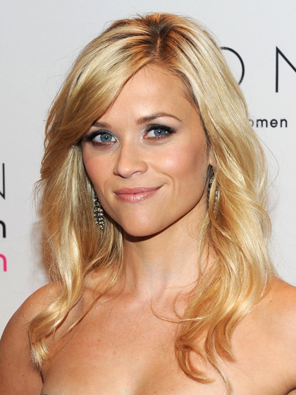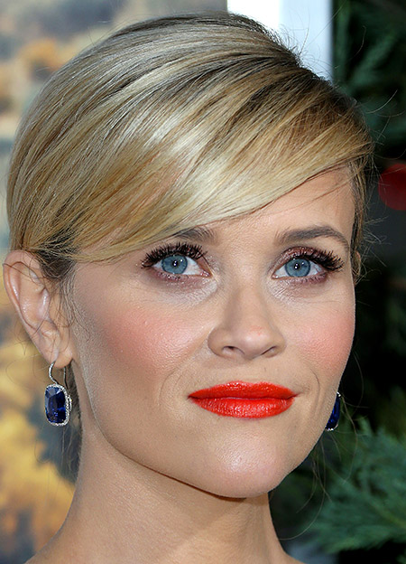 - Reese Uzerspun and bright shade of lipstick - do not fit well with each other. Only one of this detail has aged the image and made it seem tired. Bright color highlighted fine wrinkles and all skin imperfections.