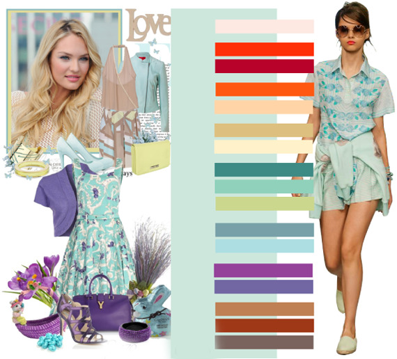 Green - closer to mint, menthol or khaki. Blue and celadon are closer to lavender and vinca. Like a blurry yellow color that looks more like a lemon. Smoky lilac and purple. Similarly, with other shades.