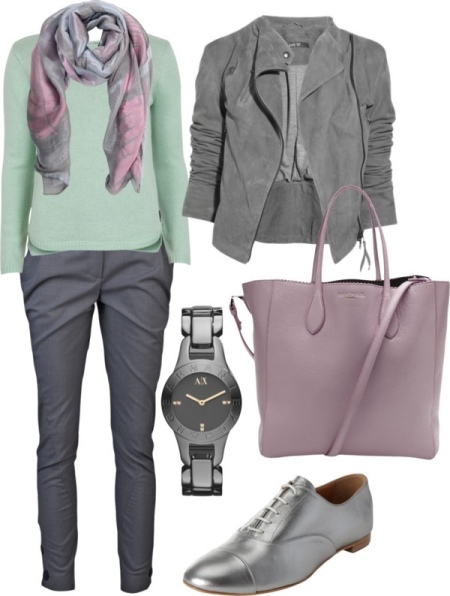Matte texture and soft suede are perfect for shoes and bags made of materials. A light chiffon scarf invariably emphasizes the airiness of the image.