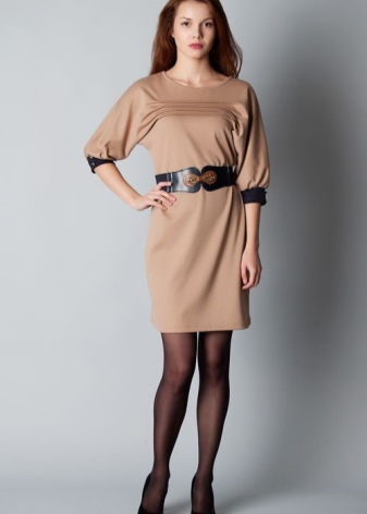 Dark and bright colors are perfect for accents. Gentle beige dress with blue belt and sandals. A calm gray dress and burgundy boots, with a bag in tone.