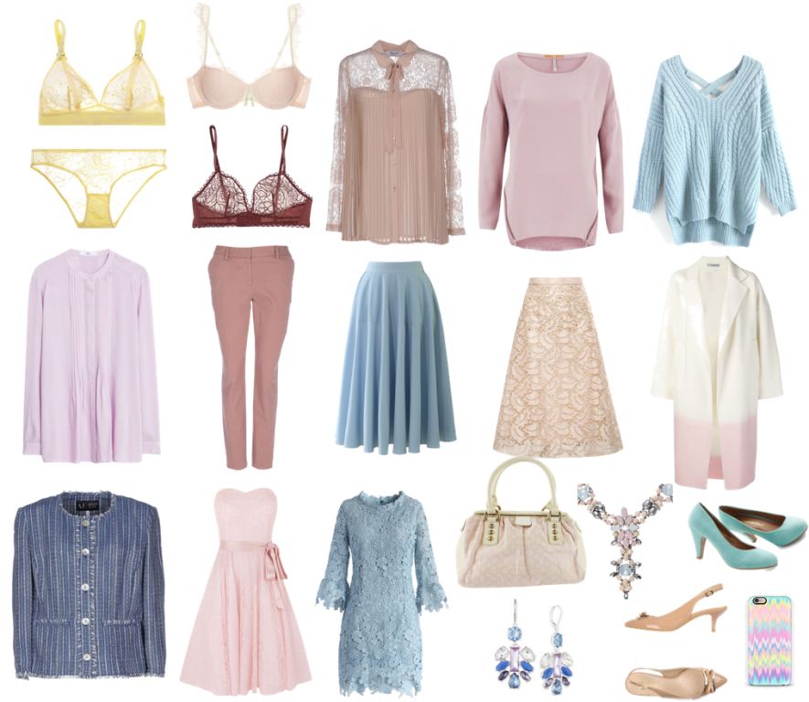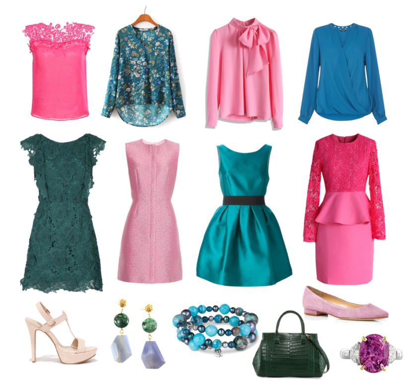 For the top - tops, blouses, shirts, t-shirts, sundresses, summer light dresses are well suited bright lavender, pale pink, mint colors. That is, the closer the clothes are to the face, the brighter the shades: light gray, pale blue, pale yellow, turquoise, vanilla.