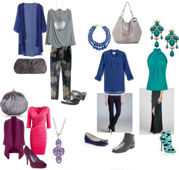 For dresses and suits fit purple, shades of gray, lavender color. Saturated brown, "coffee with milk" with dark shades of gray. These colors look elegant in shoes too.