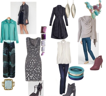 As for shoes, belts and bags, matte materials are suitable: leatherette, suede. The color scheme, respectively, anthracite, graphite, asphalt, blue-green. Shoes should be elegant, not weighing the image.