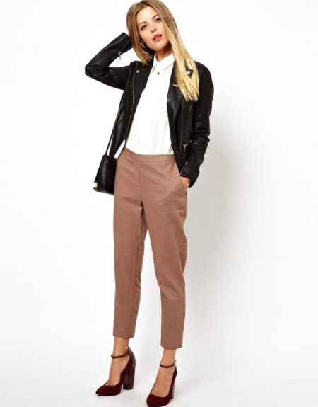 Every girl’s wardrobe should have classic trousers with arrows and a pencil skirt, and since it’s about the girl’s wardrobe - spring, then it’s best that these things are dark brown.