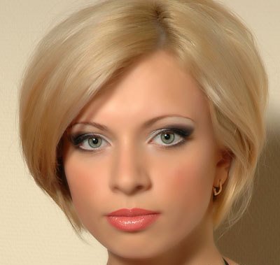 - Sunny blond hair and amber-colored eyes are characteristic of bright spring. A short haircut with voluminous styling and the almost complete lack of make-up become a decoration of the girl - spring. Mascara and nude lip gloss - what you need.