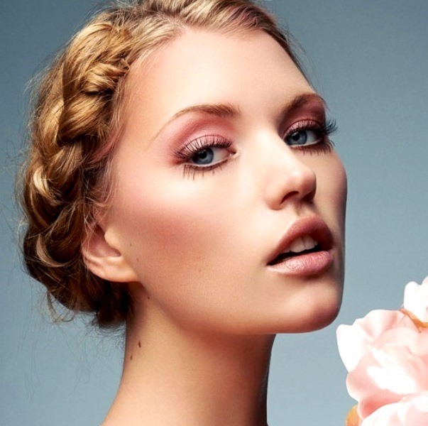 - Light blond hair and gray-blue eyes are typical characteristics of a girl of spring type appearance. Bright, but at the same time soft makeup perfectly emphasizes the elegant features of the face. The eyes are quite brightly summed up, but they look harmonious, in combination with a dull pink lipstick.