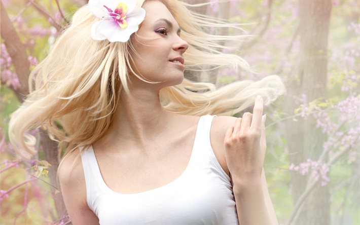 The girl's hair - spring purple subtype have a noble color of a cold shade, for example, light brown, cool blond, cold blond.