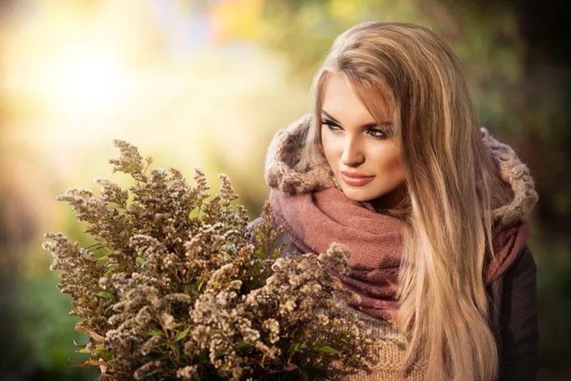 The main feature of the girl's appearance - autumn is the bright hair of a sunny shade: from golden wheat, to rich chestnut. The skin of the autumn beauty may be pale or dark, but there is always no natural blush.