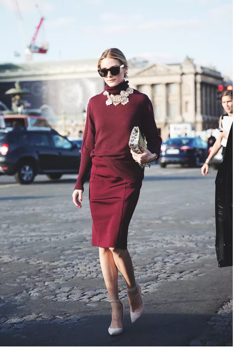 From the dark shades of the perfect soft gray and rich burgundy, which will give the image of a certain charm, and also make it more elegant and sophisticated. Along with these shades, you can use clothes of black, dark brown and dark green colors.
