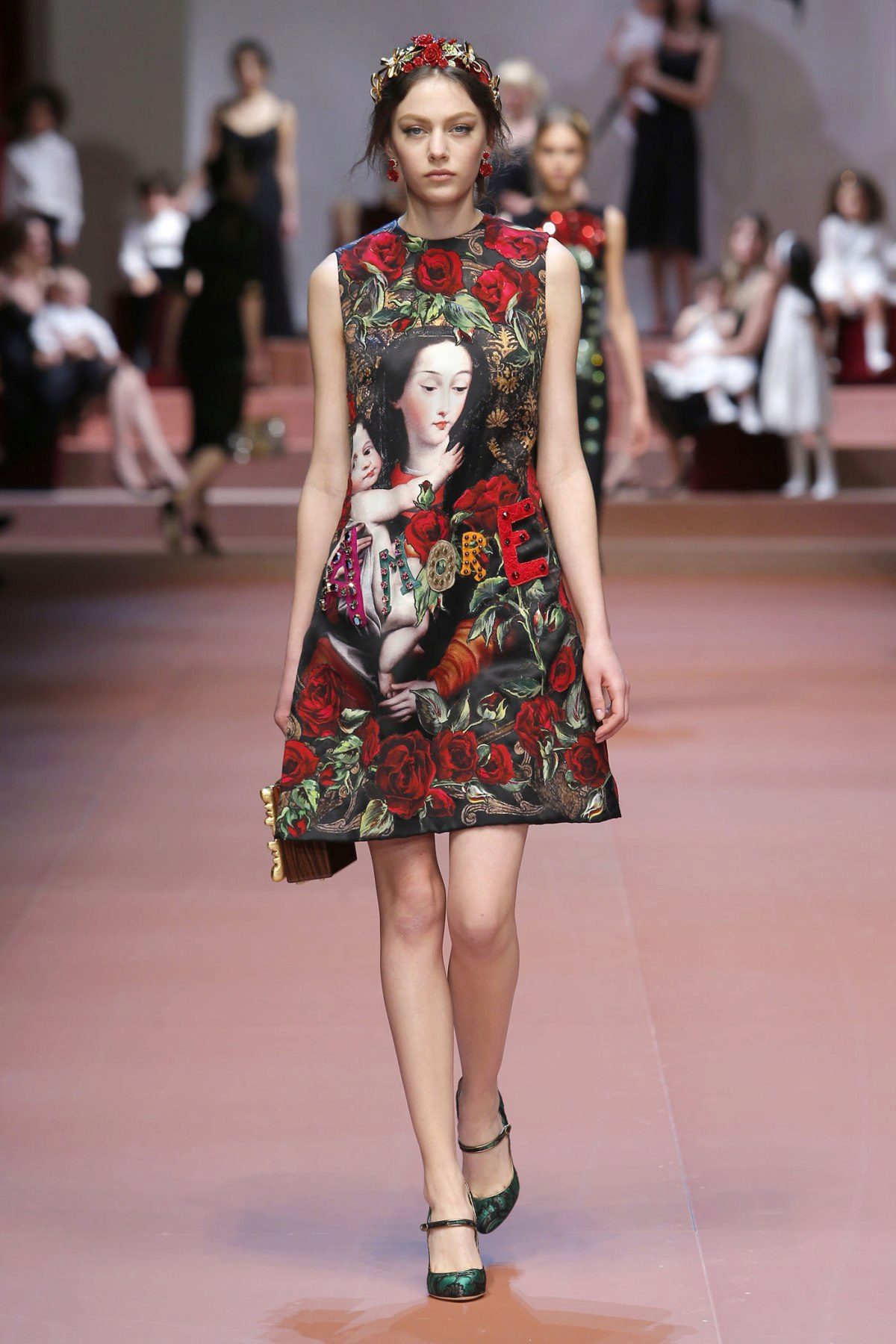 The most popular models are a cherry dress with a high waist, decorated with a black belt and a sweet bow, which is almost always located right under the breast.