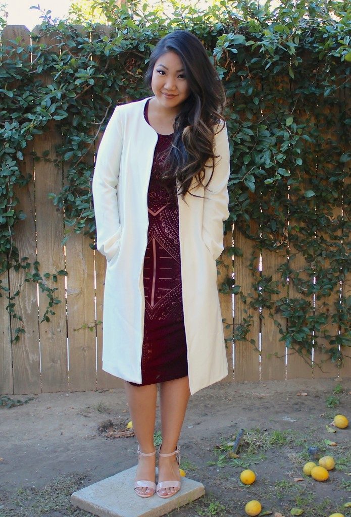In the summer, a white jacket of a fitted cut will make a profitable batch of cherry dress, and in the fall a white coat. The office version is a cherry-colored dress with a small, rounded neckline made of thicker fabric that blends perfectly with a knitted cardigan or a fitted jacket. Office dress can have a fitted or simple A-shaped cut. Intricate and asymmetrical models of dresses are more suitable for meeting with friends or for any appearance.
