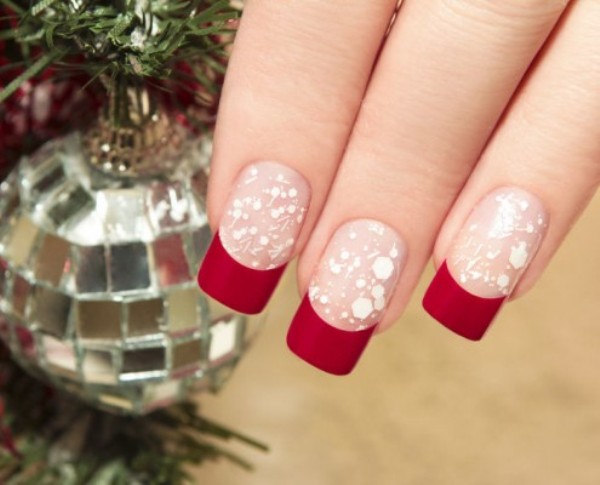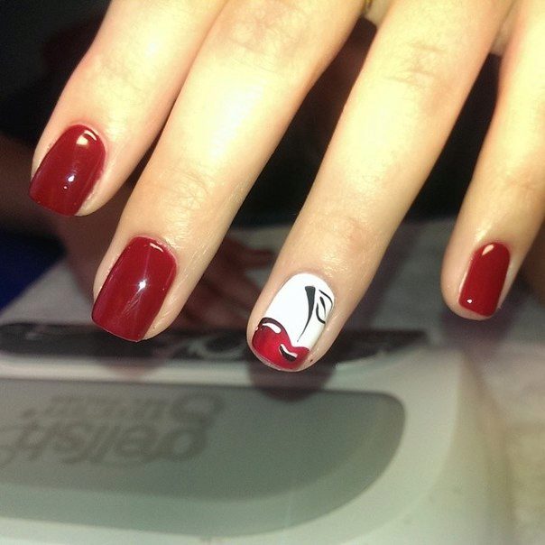 The cherry dress almost always looks noble and expensive, therefore the manicure should be appropriate. The most elite to this day is considered a classic french. If the “classics of the genre” no longer causes any admiration for you, you can make a color service jacket. Just cover the ends of your nails with lacquer, tone in tone with your chosen shade of the dress.