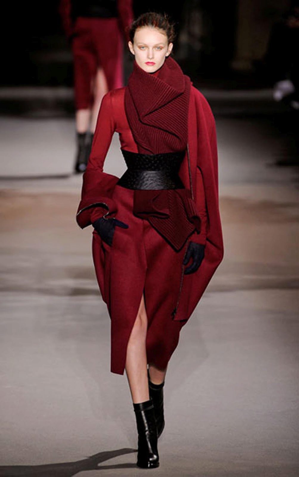For the autumn-winter period, black or gray ankle boots, boots, and other insulated models of graphite-colored shoes, as well as the colors of “wet asphalt” will suit the cherry dress. Dark gray patent leather boots are successfully combined with a laconic cherry dress.