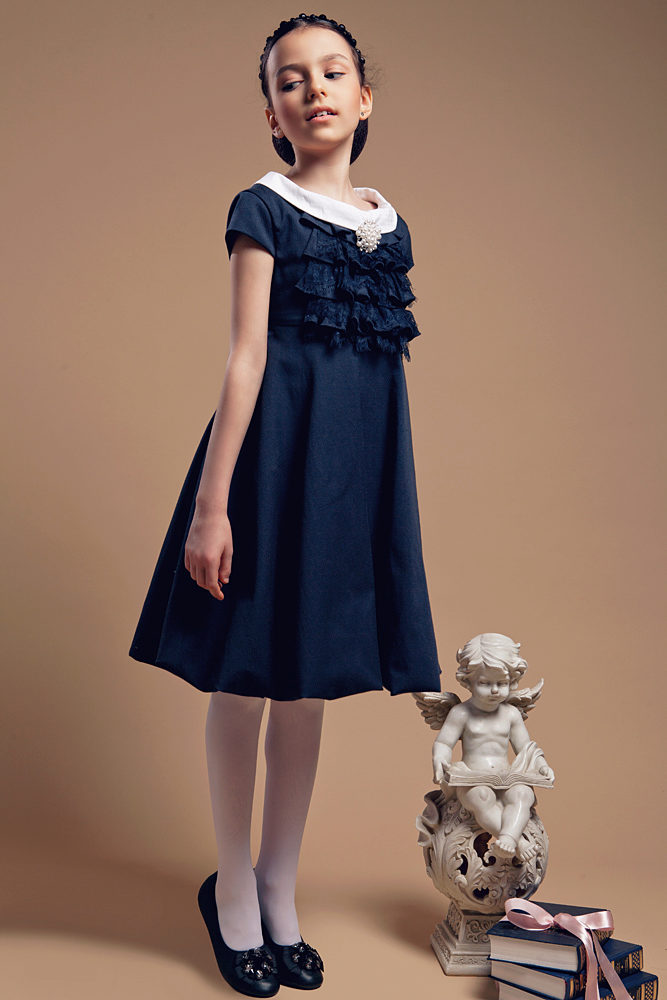 The color range is much richer than in adults and the dress can be chosen in any color that your child likes. Material for school dresses can be any, but practical: knitted dresses, sweaters, knitted tunics or cotton outfits - all for the comfort of your daughter.