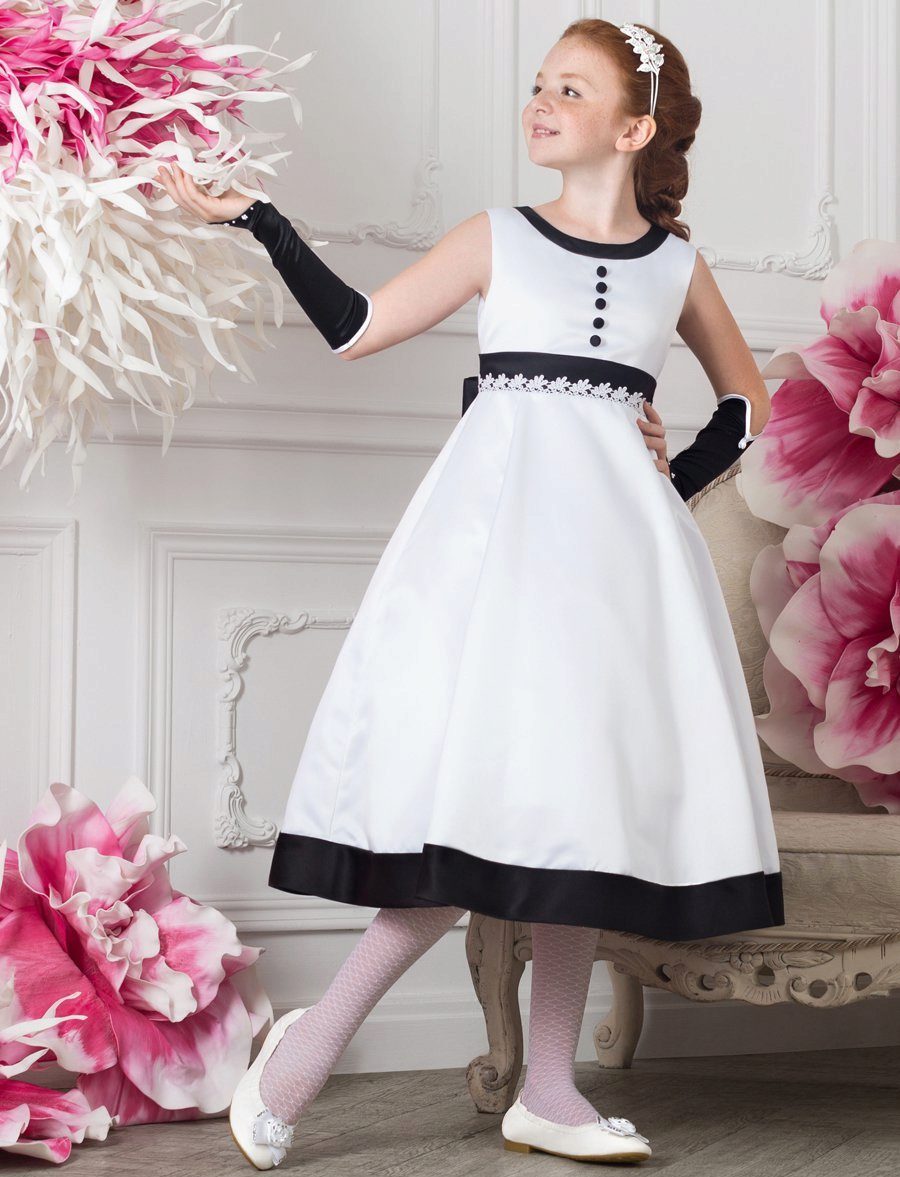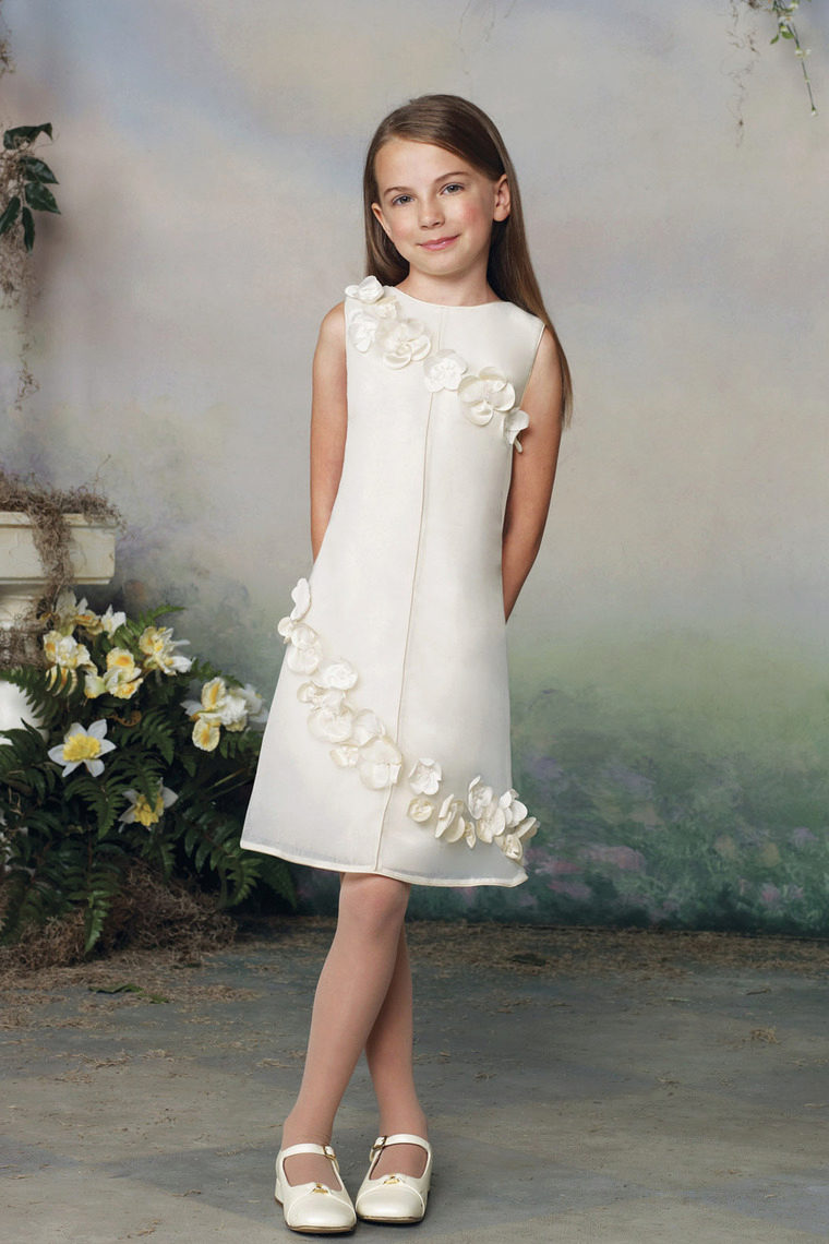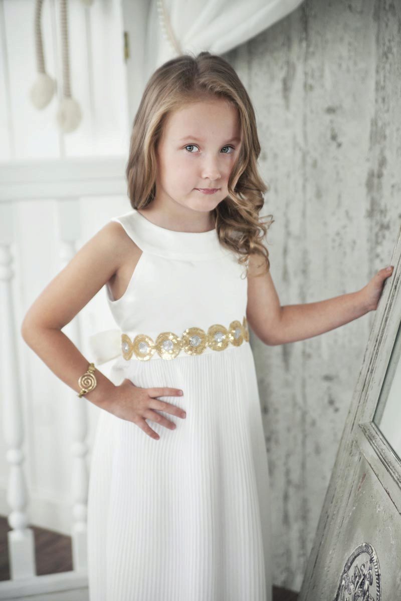 At any event, your daughter will enchant others with her beauty and simplicity if you choose a dress with a fitted top, a high waist and a flared skirt.