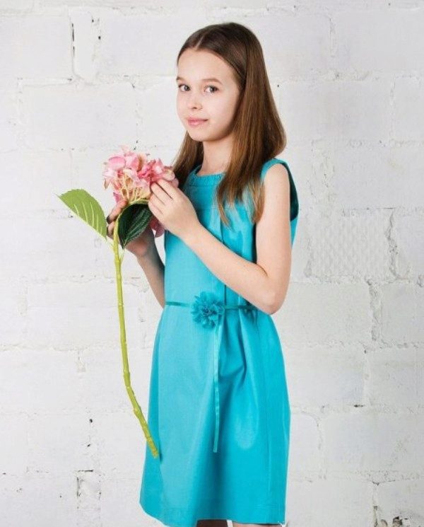 It is best to wear warm and strict sheath dresses to school, which will be amused with the help of flower drawings or cartoon characters. The sleeve can be any, convenient for the girl length: short, long or three-quarters.