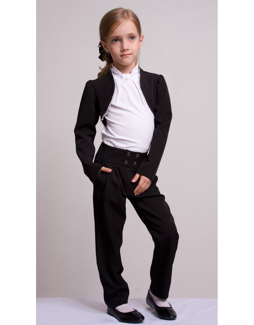 Black school shoes are a trend out of time. They are universal and suitable for any ensemble without exception. Regardless of the color of the form itself, the black tone of the shoes will harmoniously complement the gray, burgundy, dark blue, black and brown dresses, sundresses, skirts, jackets and pants.