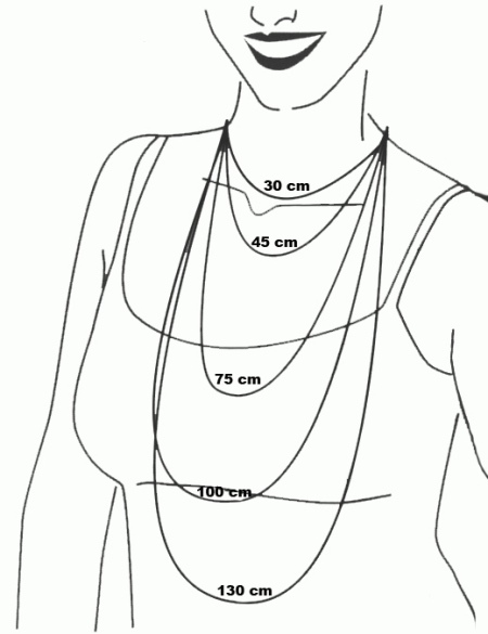 For a child, the length of the product plays a big role First of all - it is safety. Now in stores for sale are chains with a length of 30 cm and above. But in order to choose the right accessory for a child, measure his neck and multiply by two - this will be the optimal length.