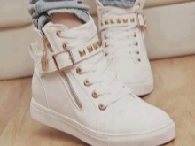 In adolescence, girls dream to grow up and appear more mature, so you can opt for stylish sneakers on wedges or heels. Such models add a little growth, as well as visually correct the silhouette, giving it a more feminine and sophisticated shape.