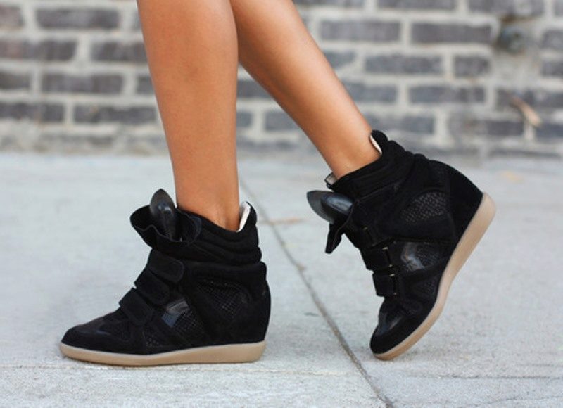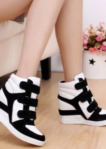Fashionable sneakers on the wedge with a large tongue and velcro instead of laces, especially girls like teenagers, because this model looks incredibly stylish and is quite a popular part of the adult wardrobe.